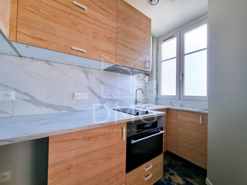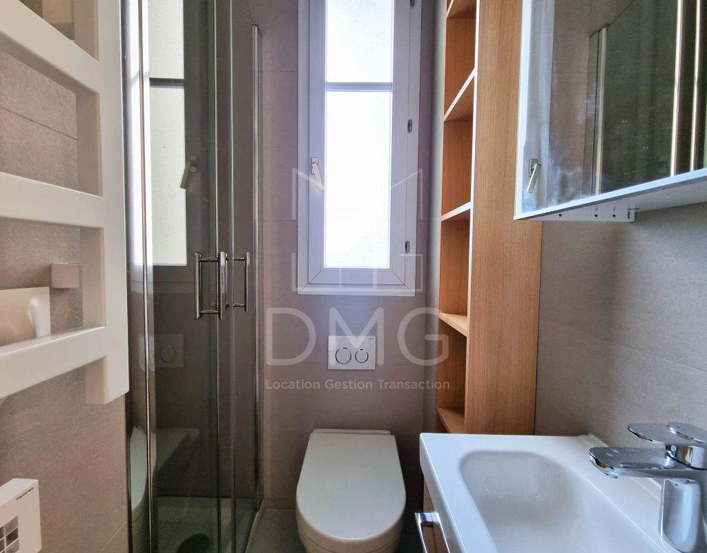 Immeuble ancien, au 7ème étage desservi par ascenseur appartement vide rénové avec goût de 33.50m² comprenant: entrée, séjour, cuisine aménagée, chambre, salle d’eau munie de toilettes, cave.