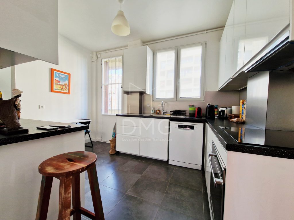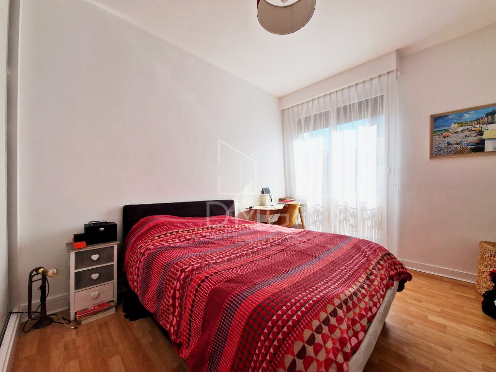Immeuble semi récent, au 4ème étage desservi par ascenseur, appartement vide traversant comprenant, entrée, double séjour donnant accès à un petit balcon, cuisine aménagée et équipée, 2 chambres, salle d’eau, toilettes séparées. Cave