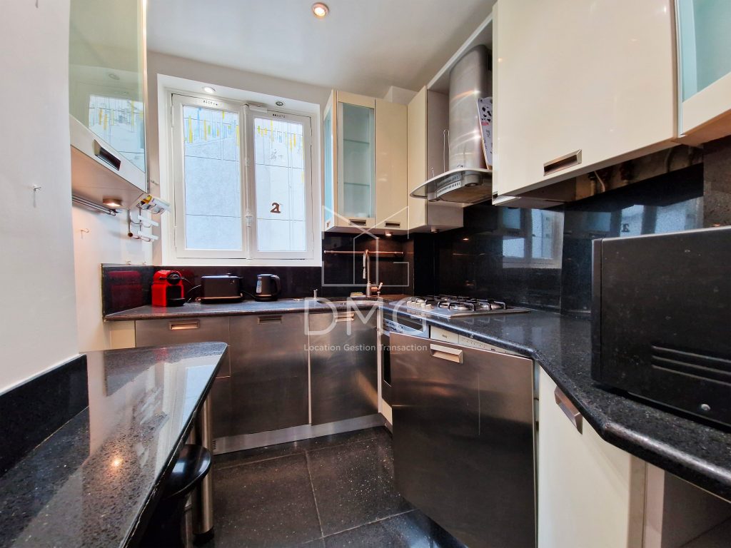 Immeuble ancien bien entretenu, au 4ème étage desservi par ascenseur à chaque demi niveau, appartement meublé clair et