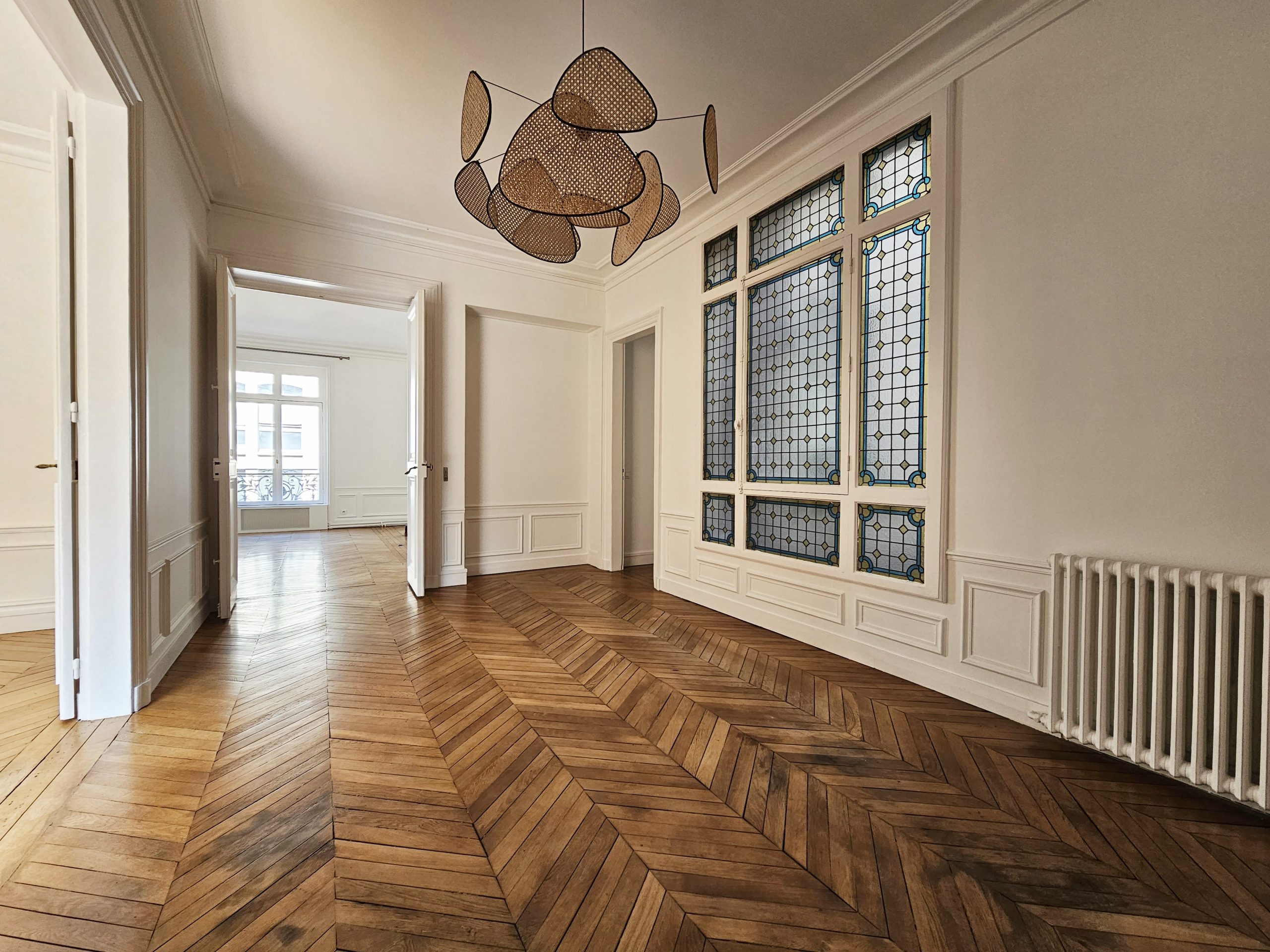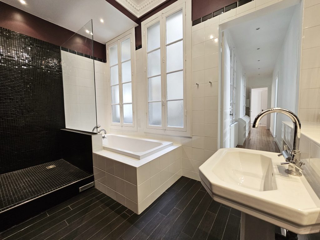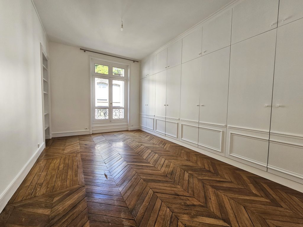 Immeuble de standing, au 3ème étage desservi par ascenseur, appartement familiale traversant bénéficiant du charme de l’ancien, parquet point de hongrie, moulures, cheminées il comprend: entrée, double séjour, salle à manger, cuisine dinatoire aménagée, une suite parentale dotée d’un dressing, une salle de bains avec douche et baignoire, 3 chambres, salle d’eau, 2 toilettes séparées. Débarras au 6ème étage et possibilité d’une chambre de service en sus.