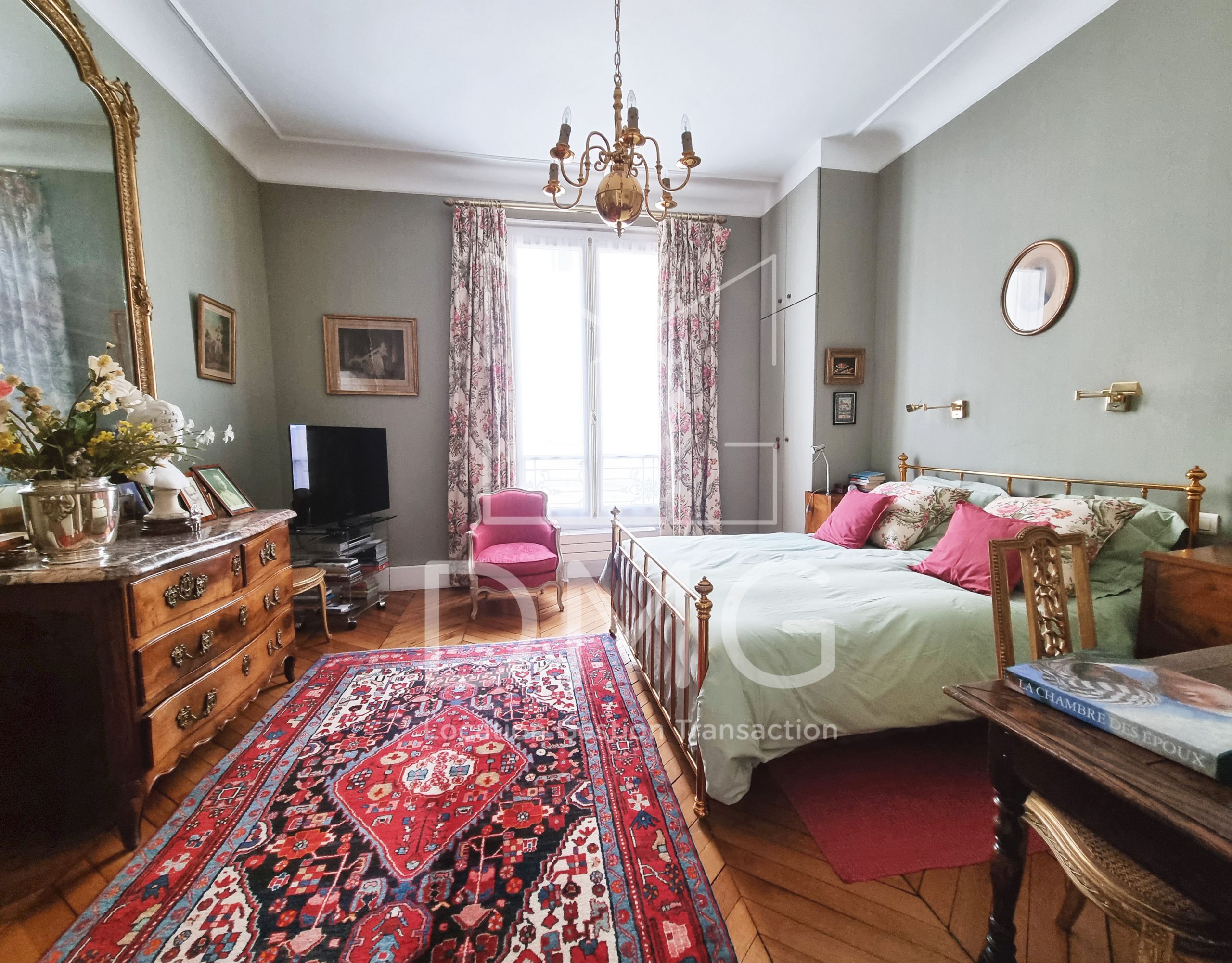Immeuble ancien de grand standing, au 3ème étage desservi par ascenseur, appartement traversant Haussmannien de type « parquet, moulures, cheminée » comprenant : entrée, double séjour, cuisine aménagée, 2 chambres sur cour clair et calme, salle d’eau, salle de bains munie de toilettes, buanderie, toilettes, accès à une terrasse avec jouissance privative. Cave