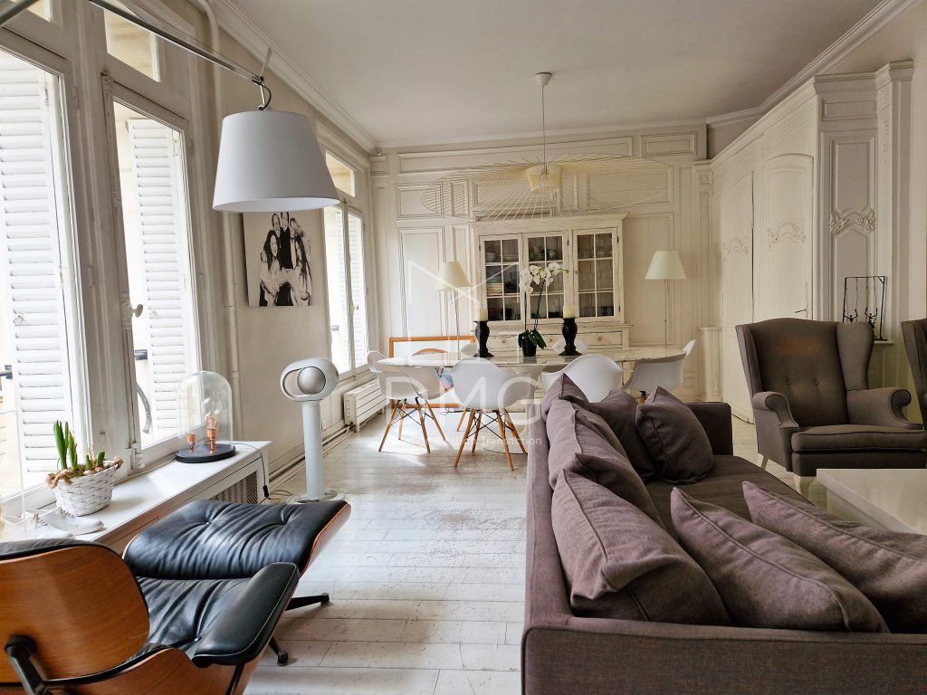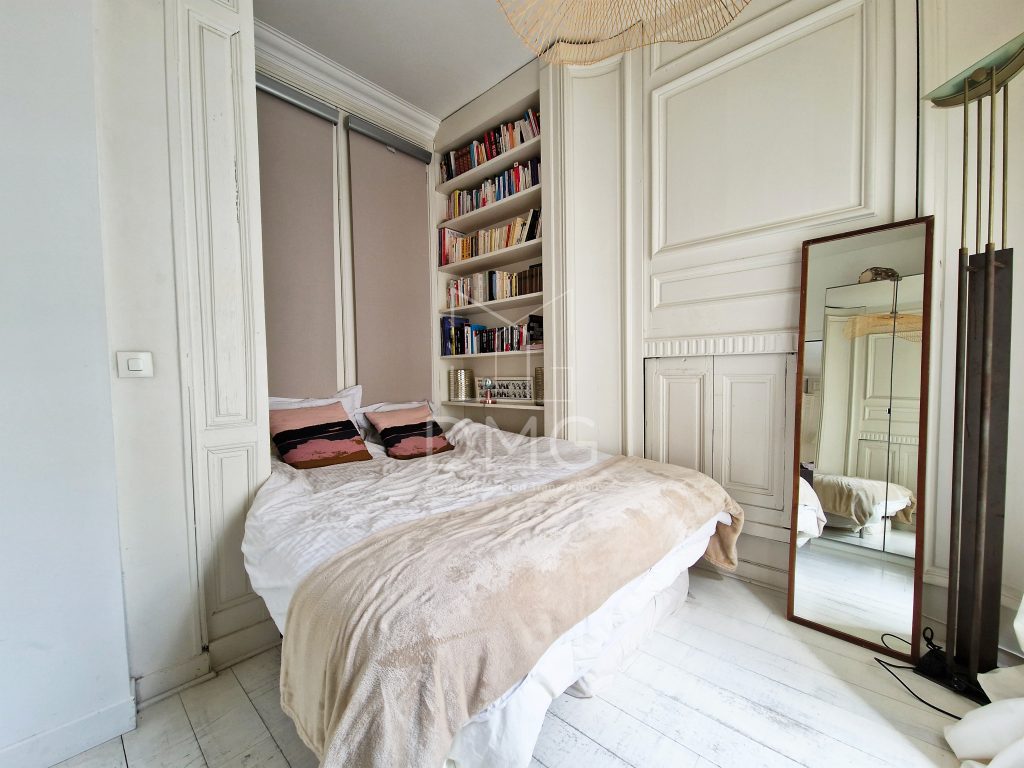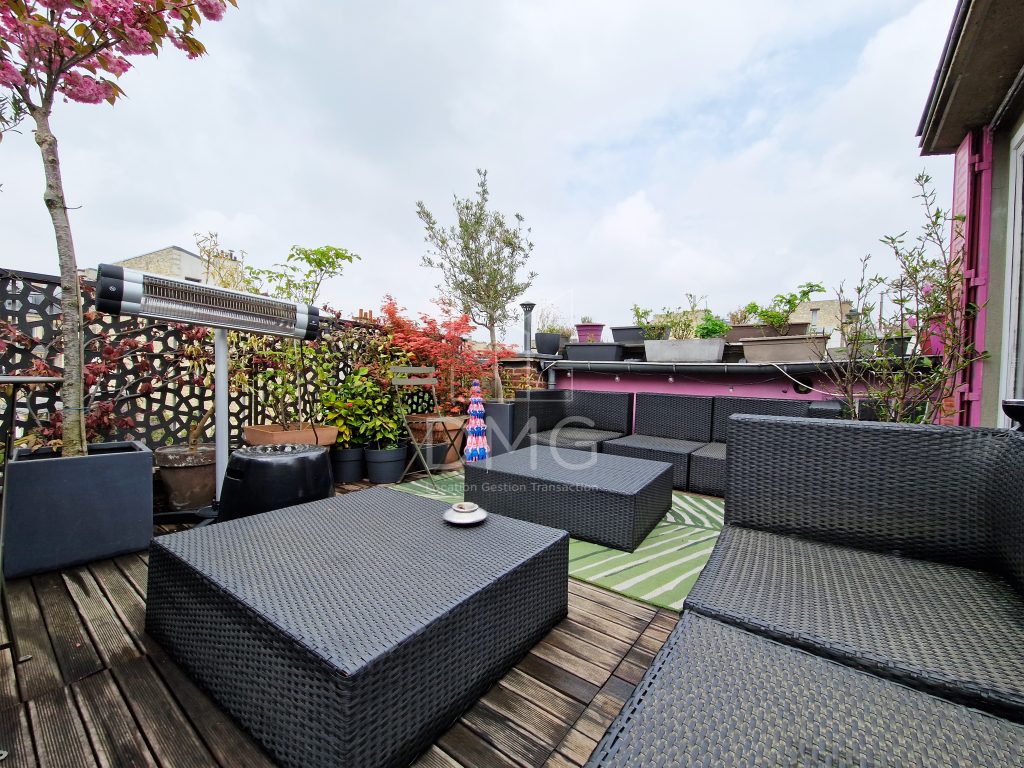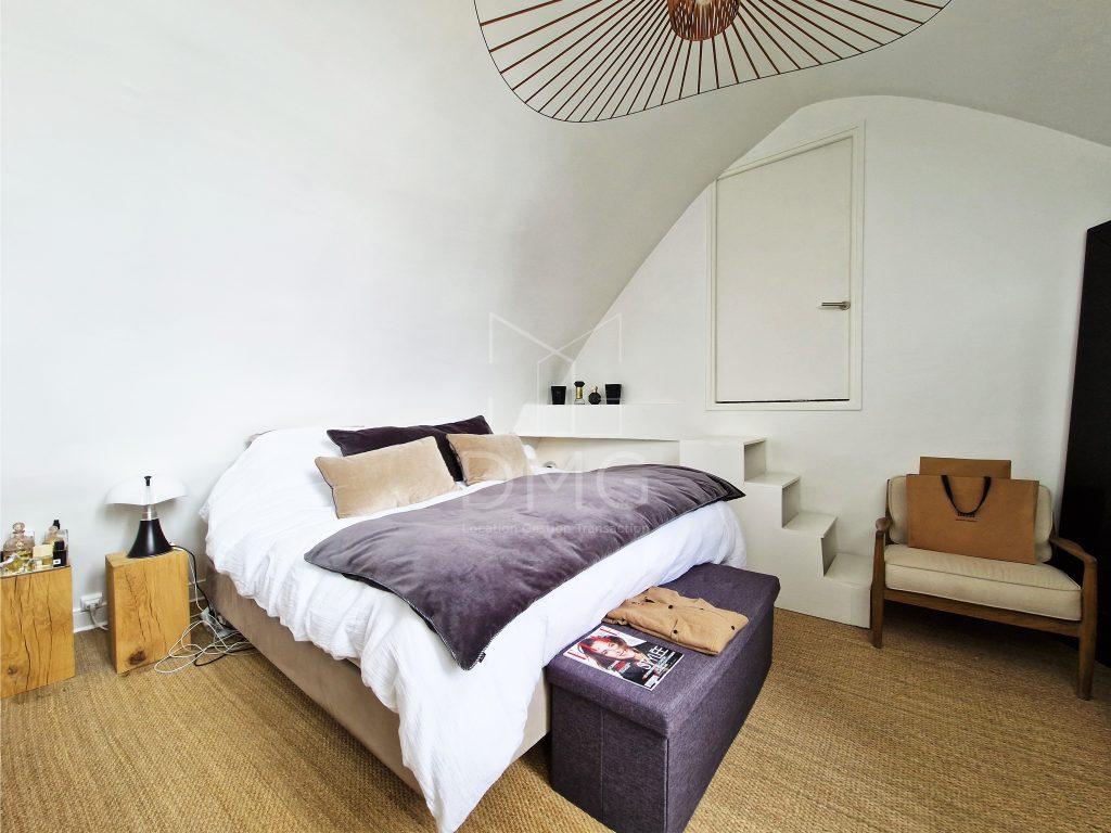 Dans une voie privée, un appartement de ville traversante sur 3 niveaux comme une maison comprenant au 1er niveau: un double séjour doté d’une cuisine ouverte aménagée, un espace bureau, au 2ème niveau: 2 chambres, salle d’eau, toilettes, au 3ème et dernier: une suite parentale avec salle d’eau et munie d’un bureau, combles non aménagés. Une terrasse de 18m² est accessible par cette chambre.