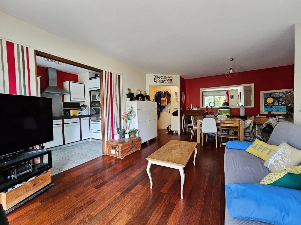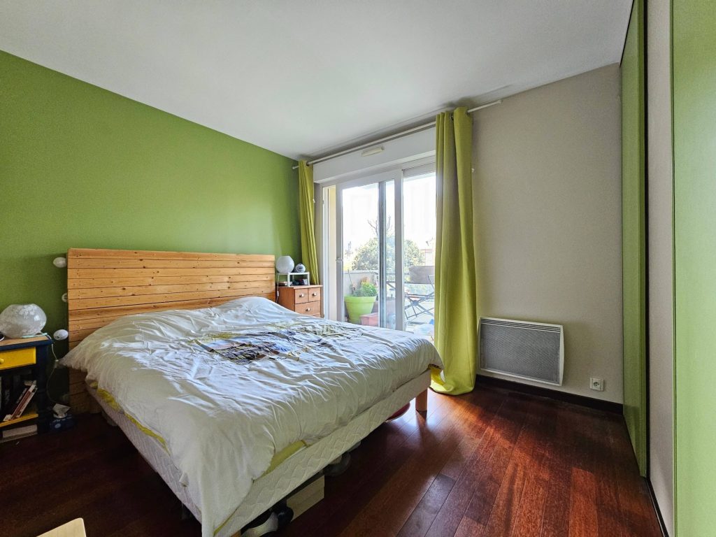 Immeuble récent, au 1er étage sur jardin, appartement clair et calme exposé sud au plan optimisé comprenant: entrée séjour permettant l’accès à un balcon, salle à manger, cuisine semi ouverte, 2 chambres, salle de bains, toilettes séparées, rangements intégrés. Cave, Parking.